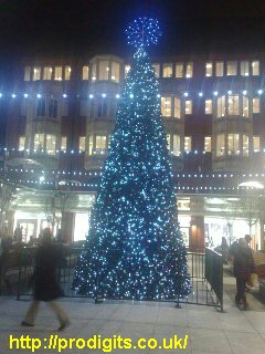Christmas tree at Ealing Broadway shopping centre in London , W5